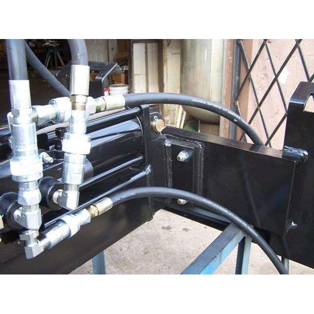 We use a series of quick disconnect couplers on the hoses to make the change over (adding the valve in the line of the hydraulic flow) so you can switch back and forth within minutes. To “flip” this unit you just have to undo the 4 bolts at the universal mounting plate and spin the beam 180 degrees and retighten the 4 bolts and your ready to split again.