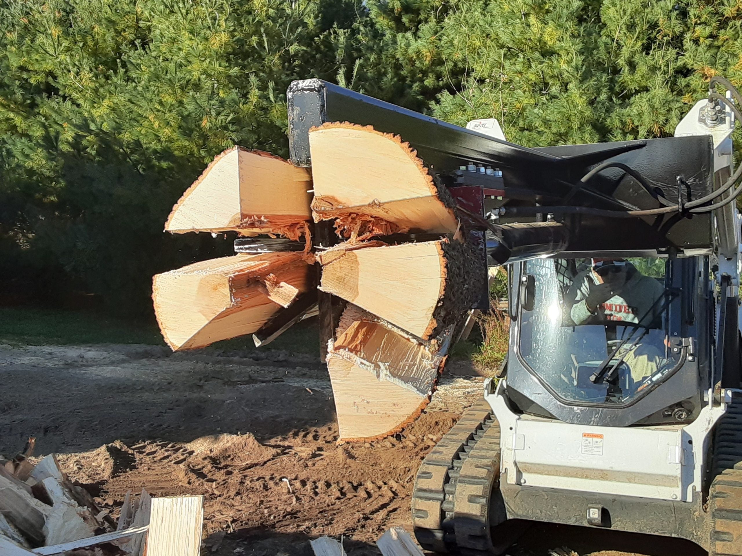 Our Upside down mounted RAM-6Way 30 ton skid loader log splitter is great for splitting the extra large logs that you don’t want to even think about lifting. The 30 tons of ram force and the sturdy tubular design beam allows you to pick these large logs off the ground and split them without ever leaving your cab. The 6 way wedge is made from 4140 hardened steel and will dramatically reduce your splitting time!