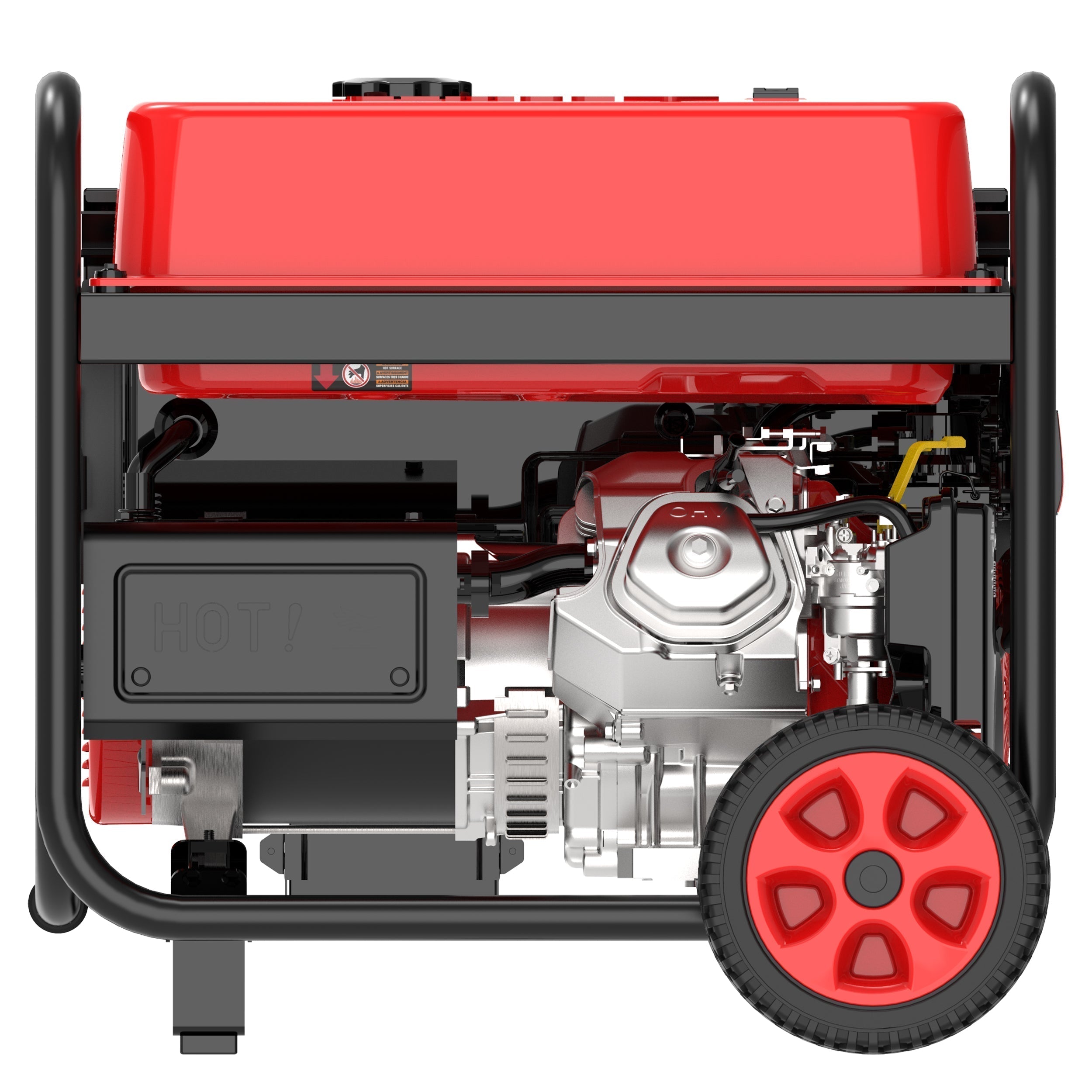 The inverter has a hardened steel frame with added roll bars, a foam grip handle, and flat-free wheels that offer easy transport. The unit has a low oil shutdown as well as a CO Sensor that monitors and reacts to carbon monoxide (CO) levels, automatically shutting down if unsafe levels are reached.