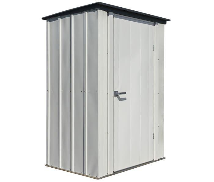 Have limited space and need to add storage? Try our Arrow 4×3 Spacemaker Patio Shed! The Spacemaker fits in the smallest, tightest areas and are great for adding storage to patios. Store furniture patio cushions, grilling supplies, candles, propane tanks, children’s toys, umbrella covers, Christmas decorations and more! If your patio is cluttered this is your solution to get organized and keep your patio looking great! The Spacemaker is constructed of a galvanized steel to avoid rust and corrosion. All the parts are pre-cut and pre-drilled for quick and easy assembly. The walls are nice and tall with 6 ft height to give you easy walk in access. A single swing open door gives you easy access and also includes a key locking brushed metal handle. Two tones of light gray and dark gray give this shed a nice look to enhance any area. At the low price point this is a nice small shed to help anyone get their areas organized. And best of all the Spacemaker shed is made in the USA and you can feel good about supporting our economy and workers!