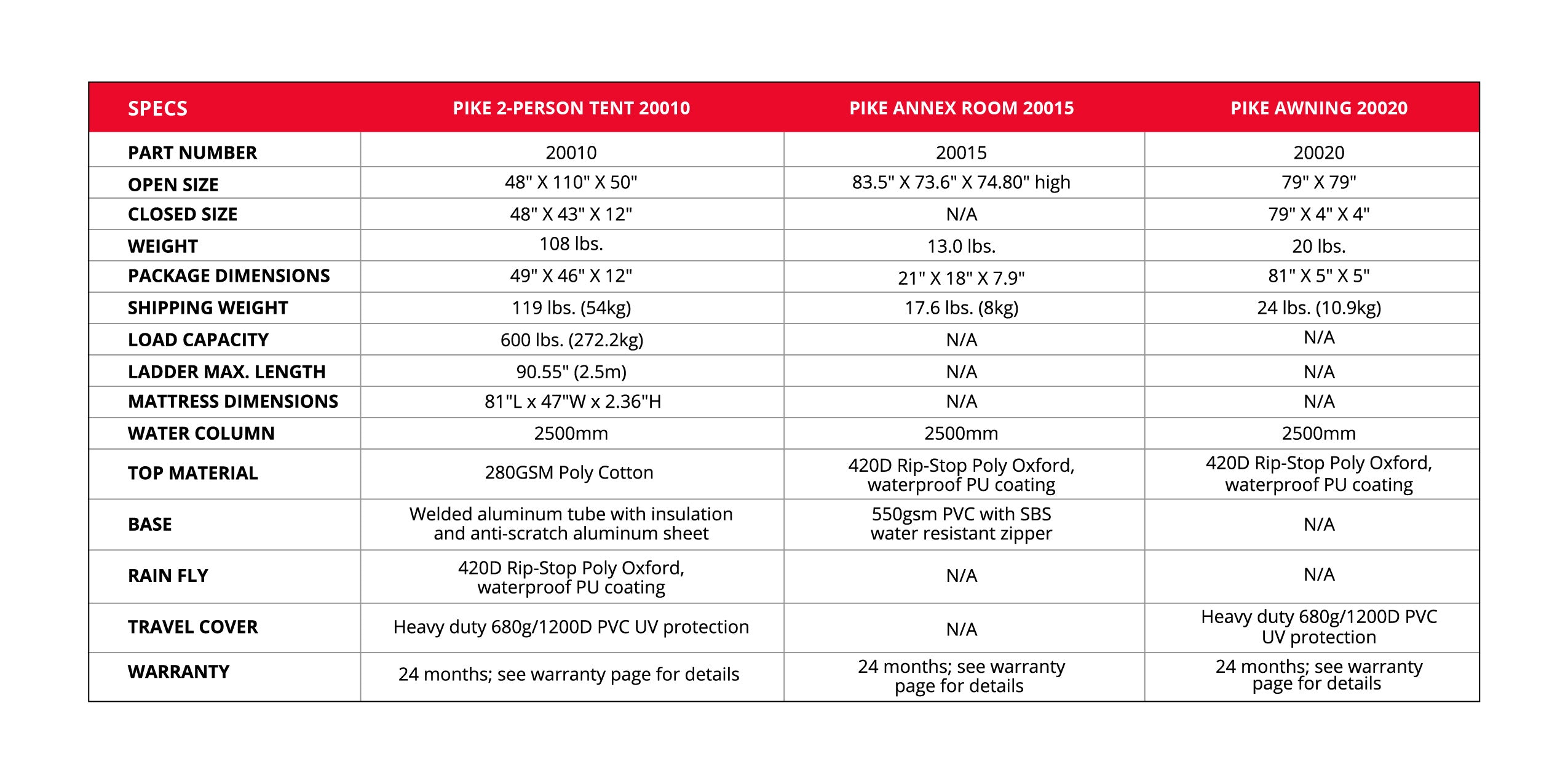 - A HEAVY DUTY TRAVEL COVER PROTECTS THE TENT AND COMPONENTS WHEN FOLDED AND NOT IN USE. THE COVER IS MADE OF STURDY, UV RESISTANT 680GSM/1200D PVC COATED TARPAULIN MATERIAL WITH HEAVY DUTY ZIPPERS