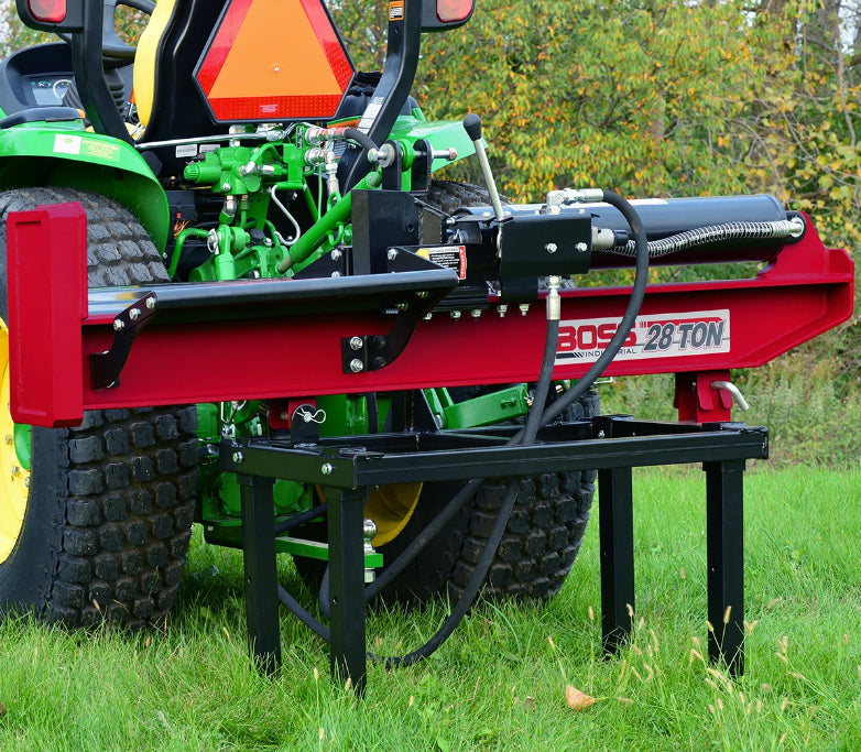The Boss Industrial 28 ton Commercial Grade 3-point log splitter runs off your tractor’s hydraulics and can split in both the horizontal or vertical position. No need to lift heavier logs up to it, just shift to the vertical position.