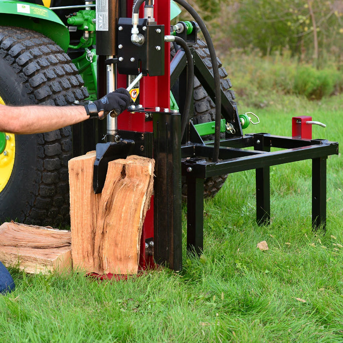 This 3-point wood splitter is fully adjustable for any category 1 or category 2, 3-point hitch size. Working height is from waist level and can be lowered to a near ground position, or as low as your 3-point arms can go allowing you to work in a comfortable position for you.
