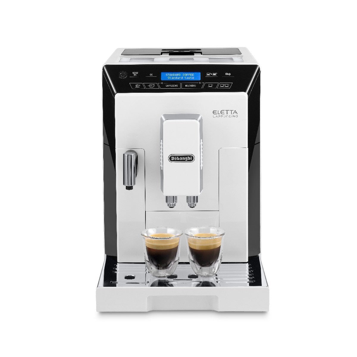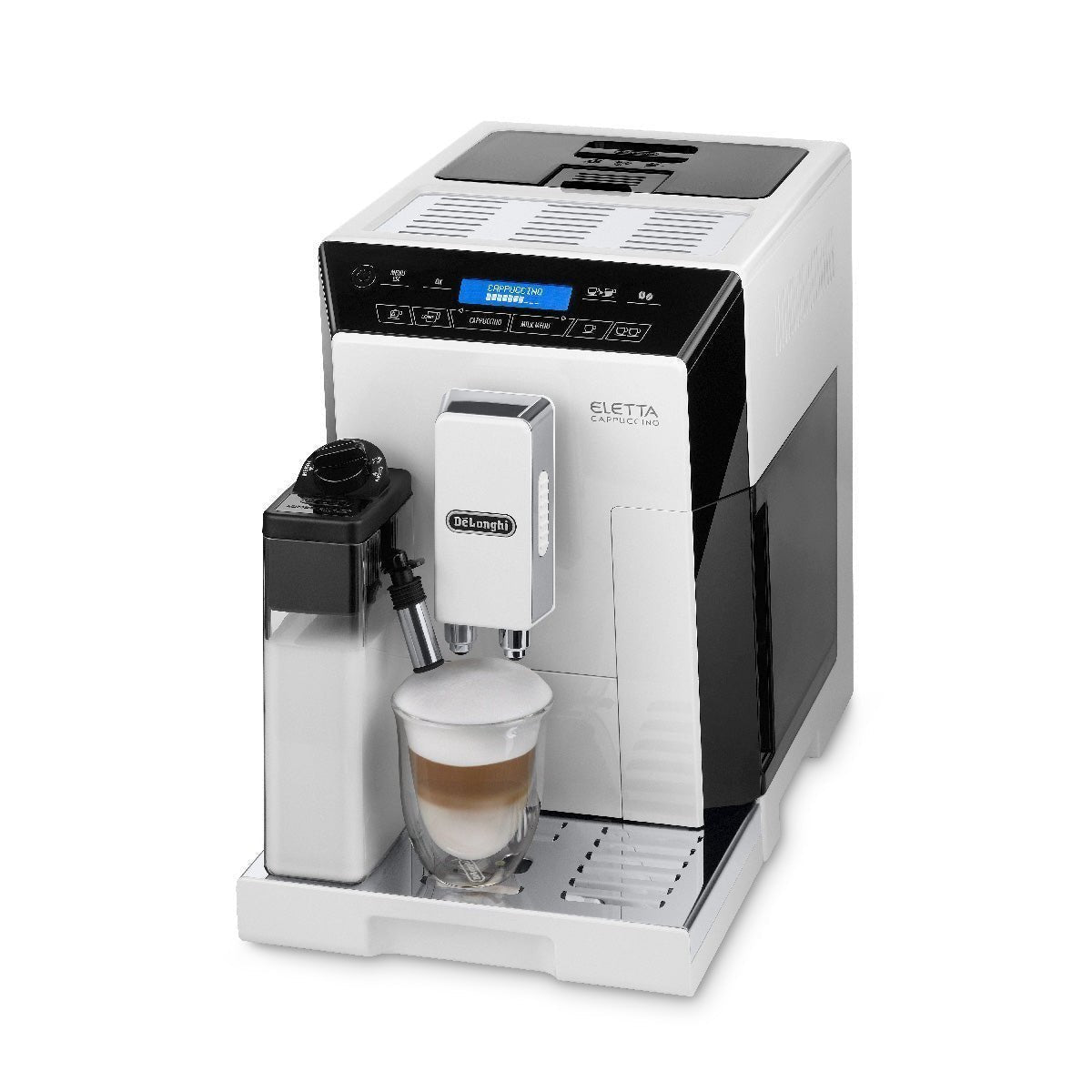 The DeLonghi ECAM44660W White Eleltta Superautomatic Coffee and Espresso machine brings a variety of barista quality drinks at the touch of a button. The Eletta’s outstanding convenience makes morning and nighttime drinks a pleasure, especially for those who prefer both convenience and quality.