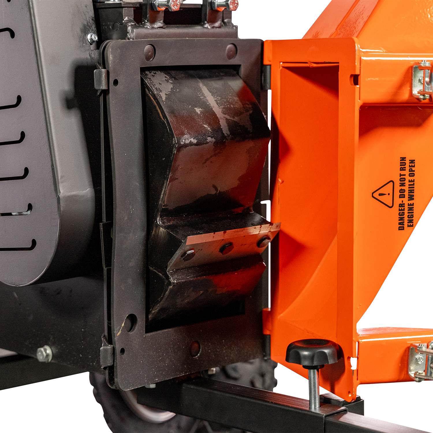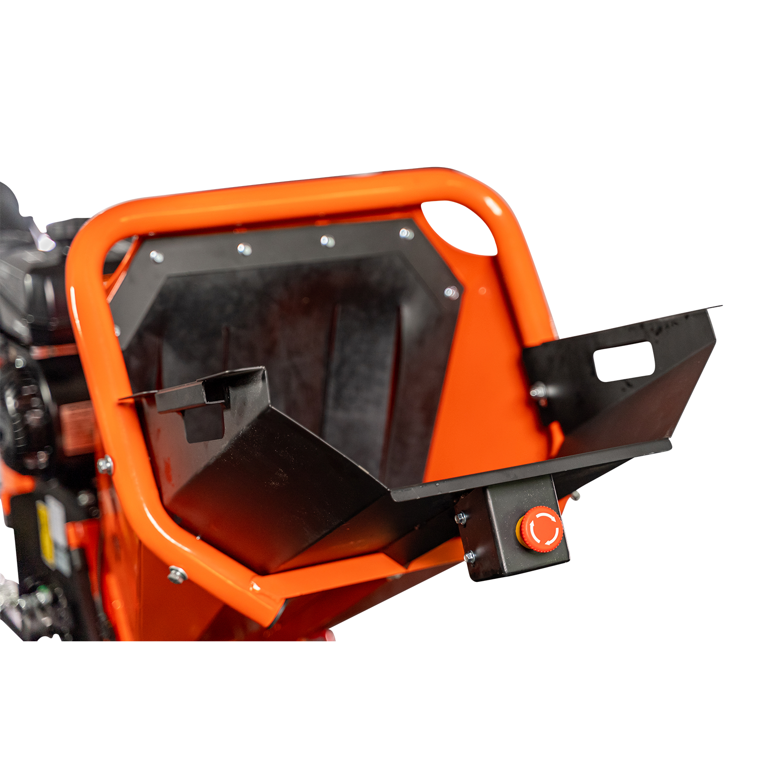 - Extra-large extended feed chute with integrated equipment moving handles and easy-stop shutoff