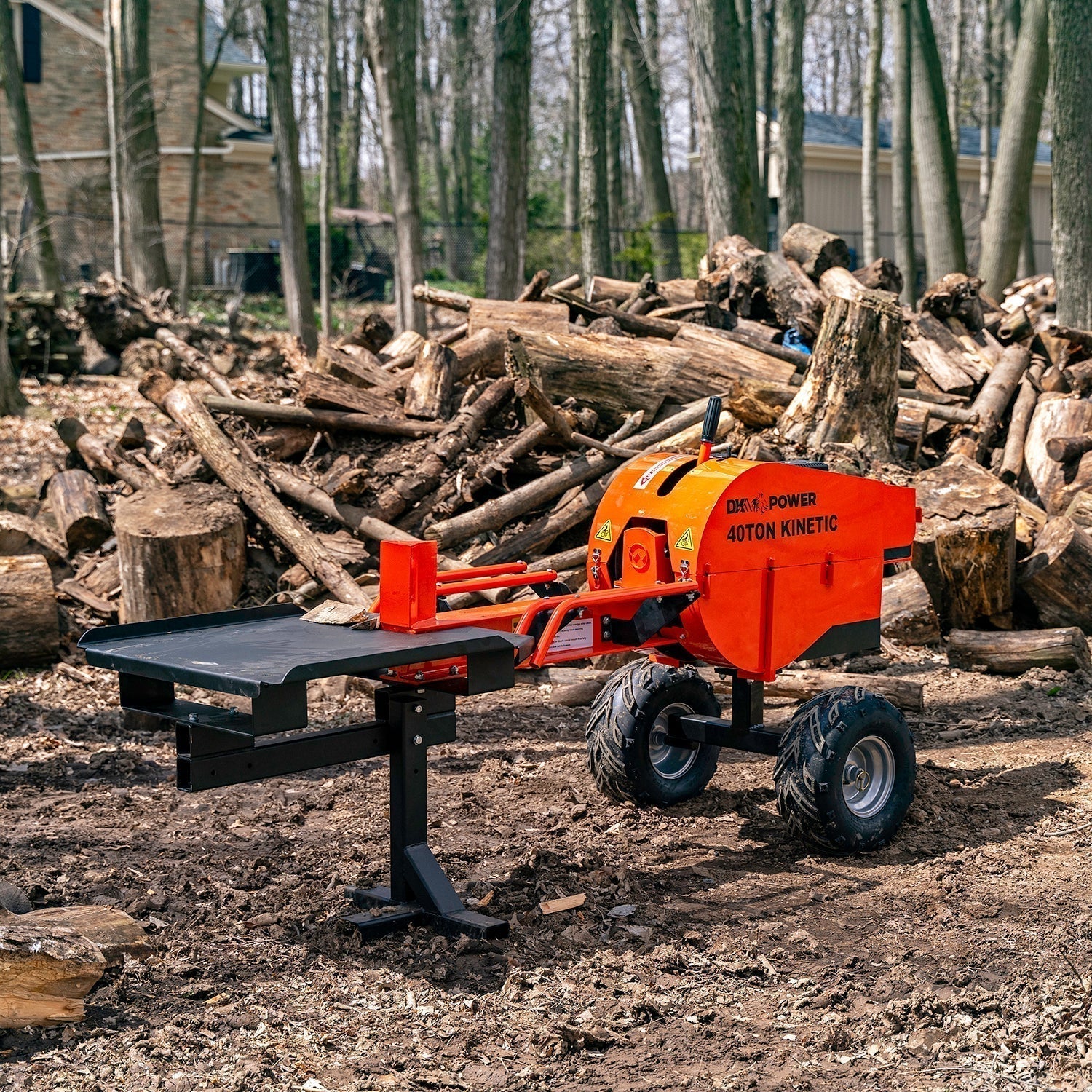 Powered by a Kohler Command Pro CH270, 4000 RPM, 7 HP engine, you know you’re getting a “commercial-grade” unit with a 3-year warranty as you plow through logs and get your splitting done fast. The oversized reinforced steel work table keeps the split wood nearby and ready to be repositioned for the next split.