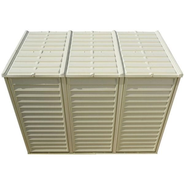 today.The SideMate 4×8 vinyl shed is an easy-to-assemble outdoor storage solution designed to be placed on the side of your home. The contemporary design beautifies any backyard while maximizing storage space for yard tools or garden equipment. Constructed of durable all weather vinyl in a neutral ivory color, the SideMate vinyl shed is maintenance free. It will never need painting or treating. It will not rust, dent, rot, mildew or fade. It is also fire retardant and much quieter in the rain than metal storage sheds. The wall columns are reinforced with a solid metal structure, giving the vinyl shed a lot of strength and making it easy to hang shelves or garden tools inside. The foundation kit provides a galvanized metal foundation. It eases the installation process, ensures a square shed and elevates your floor off the ground. With the foundation kit you’ll be able to build your shed the day you receive it.