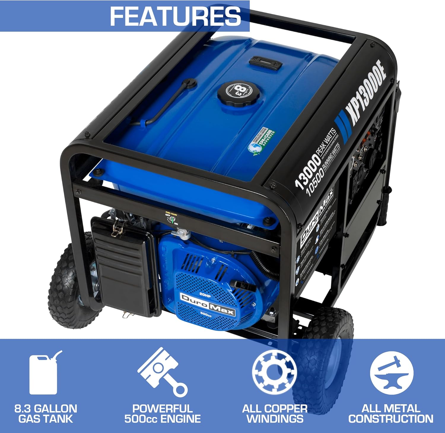 The XP13000EH delivers up to 13,000 watts of power, giving you the strength to keep your whole home running during storms, outages, or emergency situations. As a leader in Dual Fuel portable generator innovation, DuroMax offers dependable performance across a full range of models — from compact digital inverters to heavy-duty whole-home units.