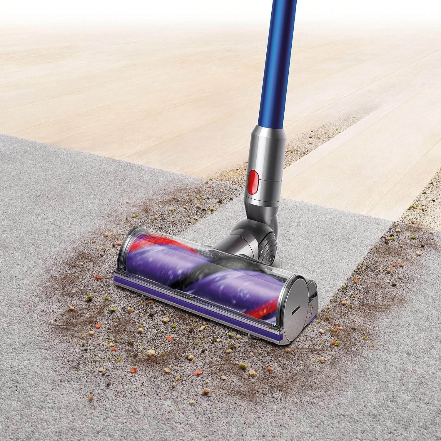 Quickly switch between carpets, hard floors, and above‑floor cleaning with interchangeable cleaning tools. The torque drive cleaner head removes deep‑down dirt from carpets, while the soft roller head handles dust and debris on hard floors.