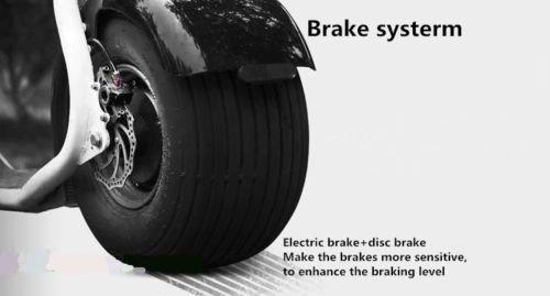 The eDrift UH-ES295 gets its energy from a 60-volt, 20-amp battery that charges fully in 2 to 3 hours using any standard outlet. The batteries powers you along at up to at a high mph, with your ride easily controlled thanks to the scooter forward gears.A pair of hydraulic disc brakes controlled by hand levers can slow or stop you at any time. The battery also makes sure the headlight shines brightly and that the alarm system is ready to make plenty of noise if