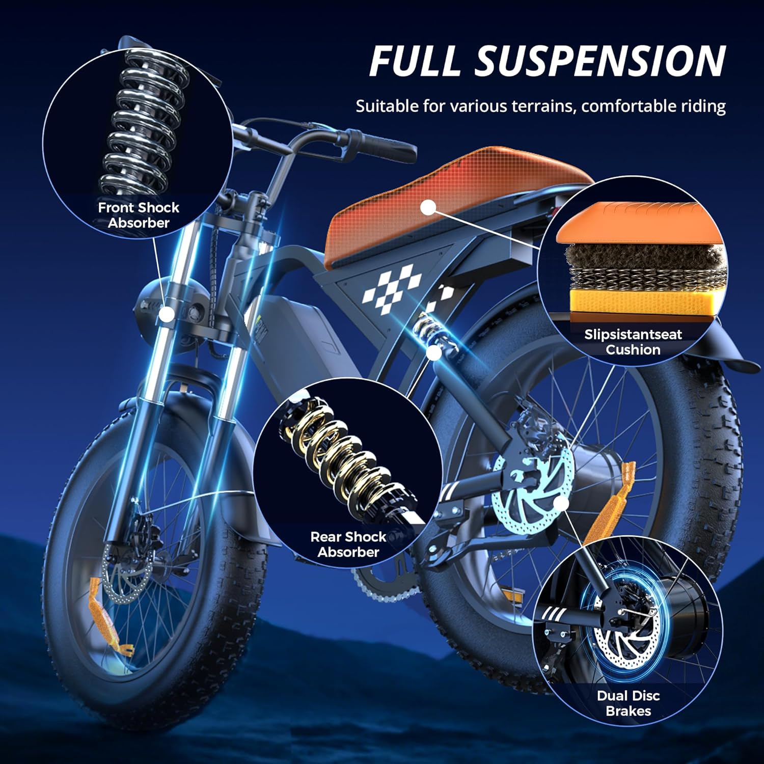Electric Bike for Adults, 750–1000W, 60 Mile Range, 20MPH, 20″/26″ Tires, Mountain & Commuting