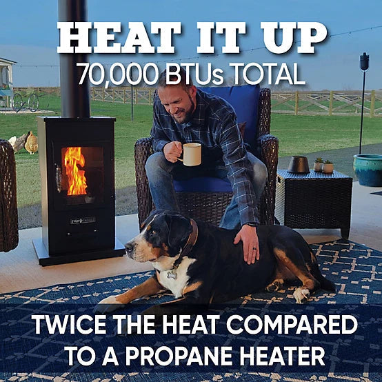 Upgrade your outdoor heating experience with the Even Embers 70,000 BTU Pellet-Fueled Patio Heater—a powerful, efficient, and cost-effective alternative to traditional propane heaters. Designed to provide twice the heat compared to propane models, this heater ensures optimal warmth for your backyard, patio, tailgate, or any outdoor gathering.