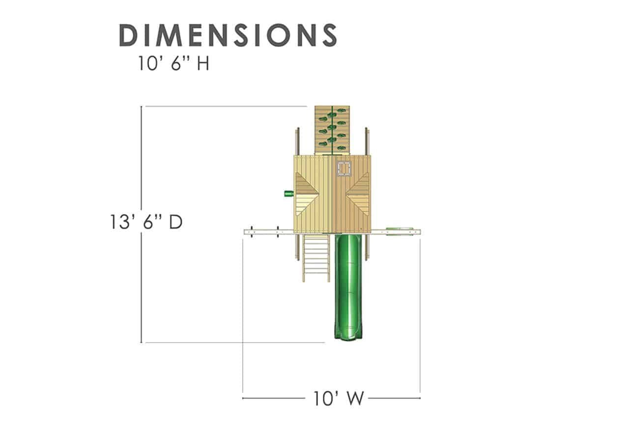 - 10′ 6” H X 10′ W X 13′ 6” D