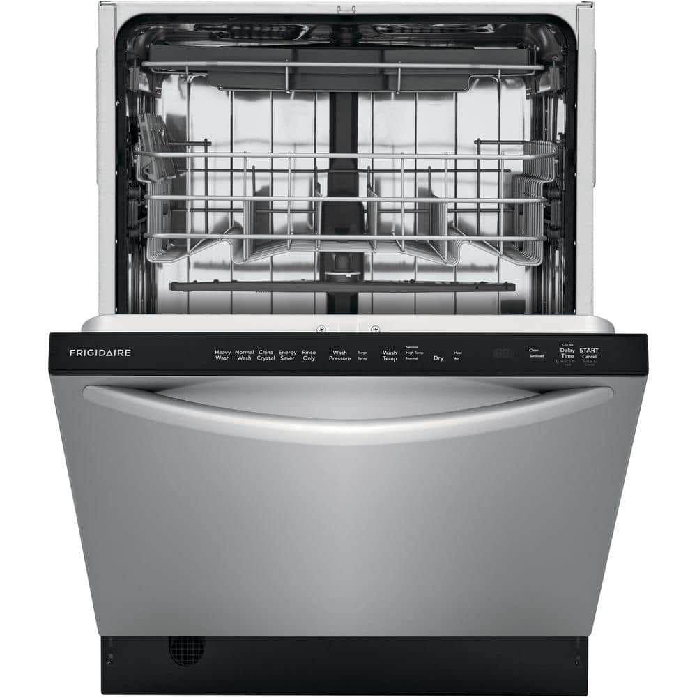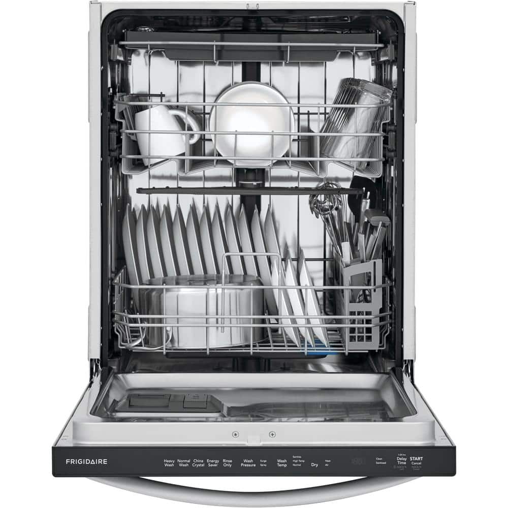 The Frigidaire 24 in. built-in dishwasher features a large capacity tall tub design that fits 12 place settings allowing you to wash more at once. The premium stainless steel interior enhances performance and extends the life of the dishwasher. DishSense Technology uses sensors to detect the best water temperature and duration. The ENERGY STAR Qualified appliance also has an Energy Saver option that dries without using heat, cutting down on your energy bill. Loading and unloading is much easier with our 3rd rack.