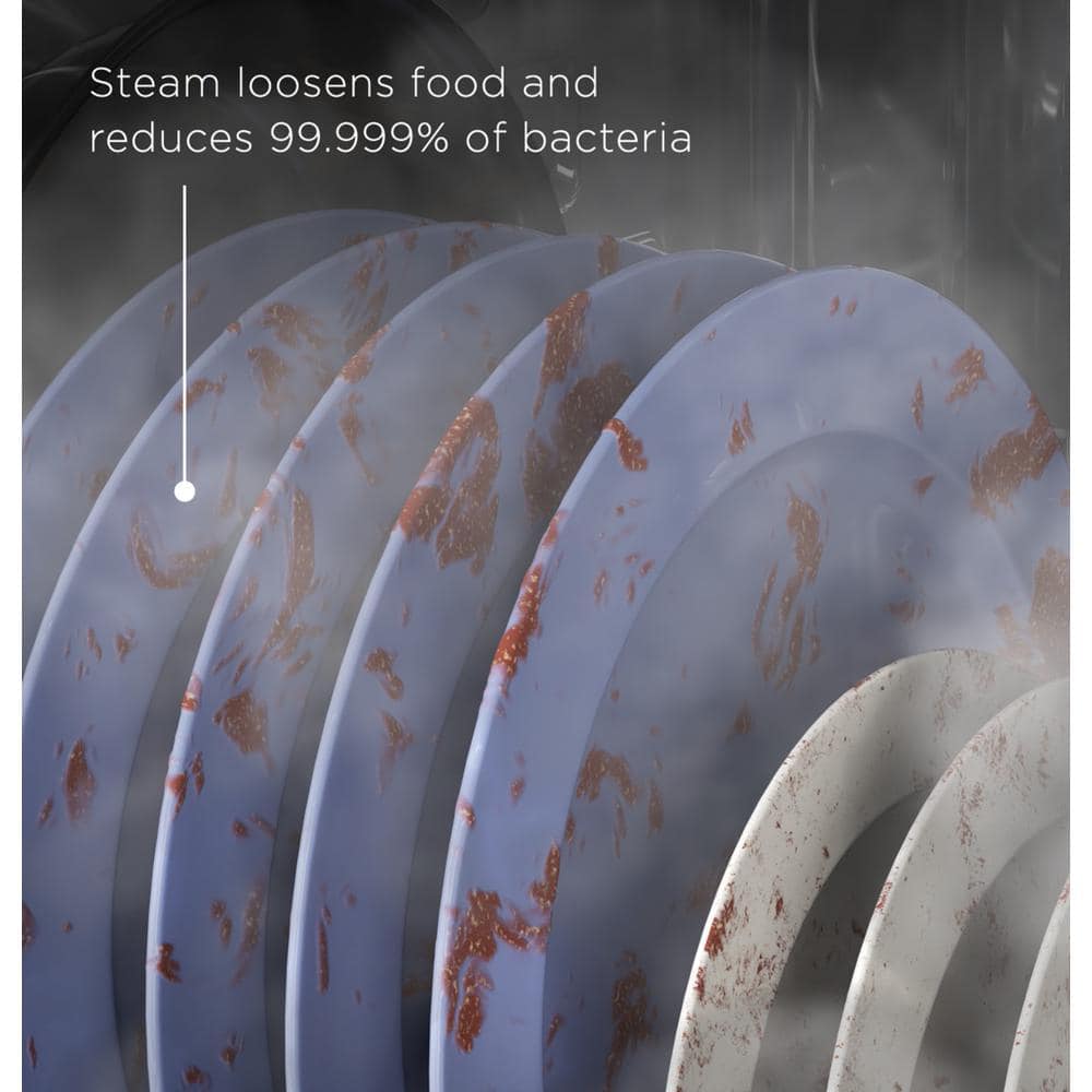 • Steam + Sani – Loosens tough soils before any cycle virtually eliminating the need for soaking or pre-rinsing dishes. Plus a High-temperature rinse sanitizes and reduces 99.999% of bacteria found on dishes