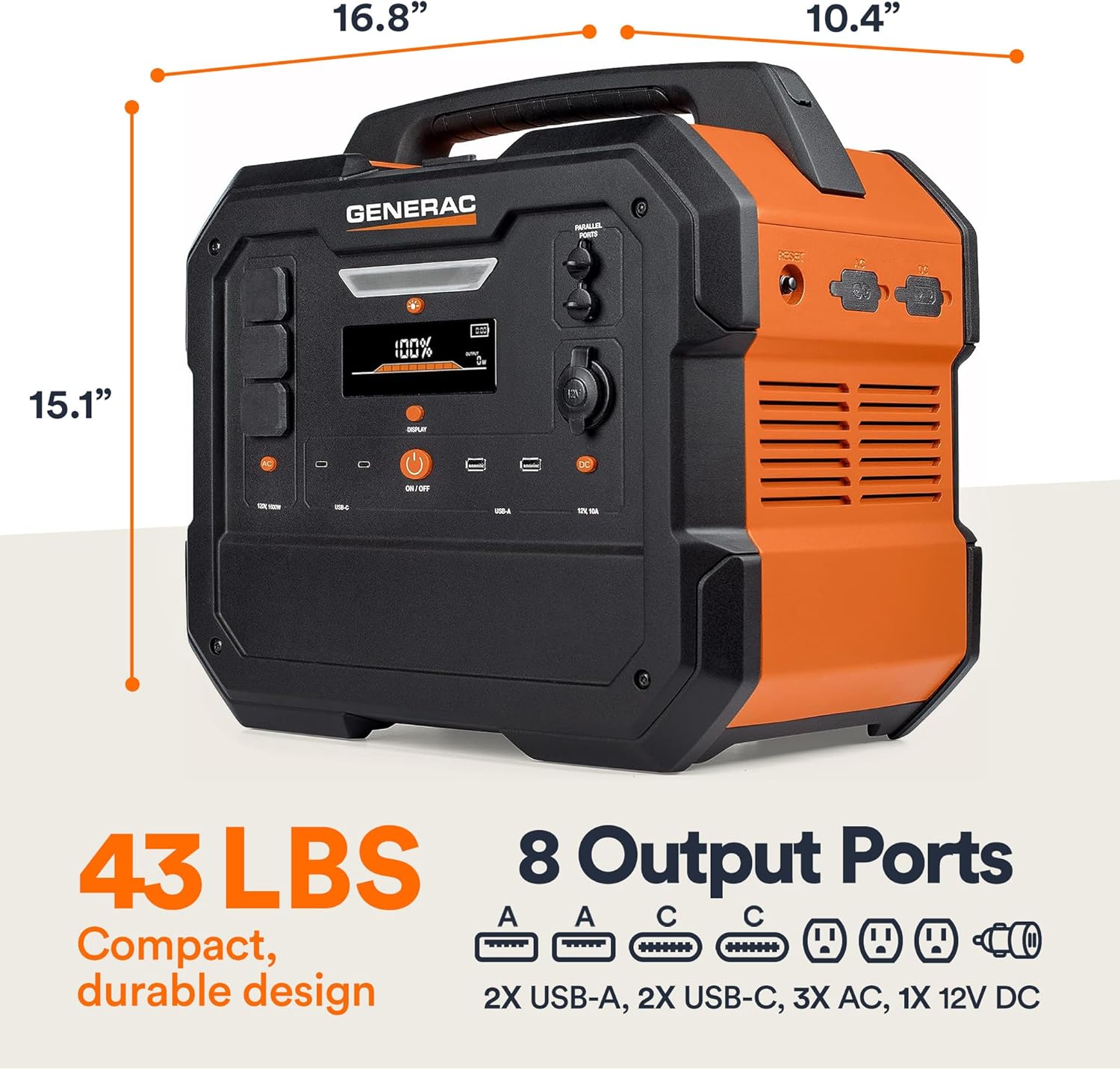 A bright 4.7-inch multi-color display keeps you informed at all times. Easily check battery percentage, remaining runtime, power output, and system status, so you always know how much energy you have left.