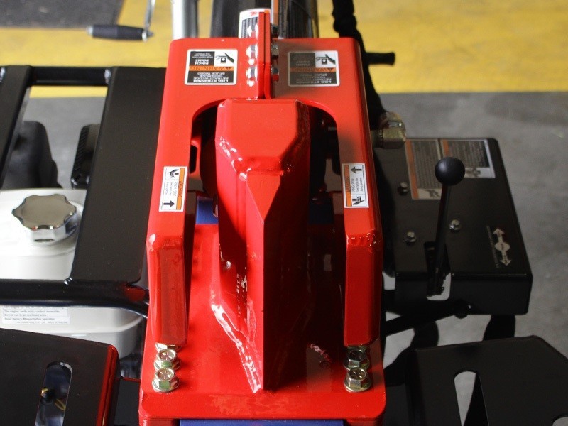 This Iron and Oak offers a unique splitting wedge that provides wider splitting separation, minimizing splitting distance and reducing cycle time. Auto idle reduction saves fuel and improves engine life. A full size log table capable of splitting up to 24” logs in length, eliminates the need to bend down to pick up split wood (save your back!).