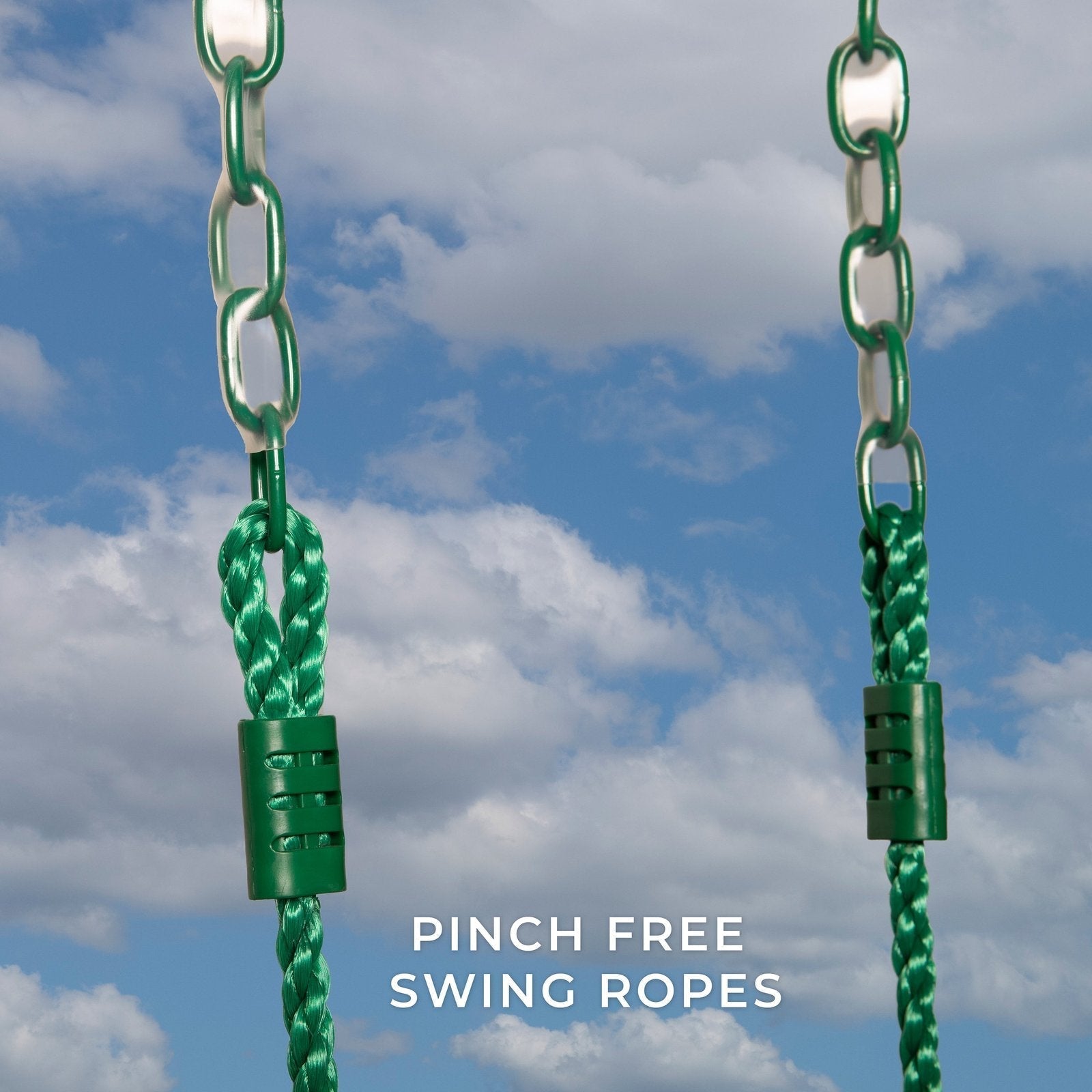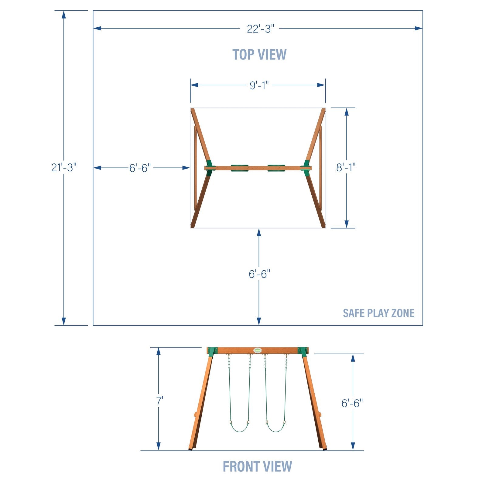 Sturdy wooden posts, steel corner supports, thick swing beam, auger foot anchors, and our strong angled A-frame all come together for an easy-to-assemble option built to last.