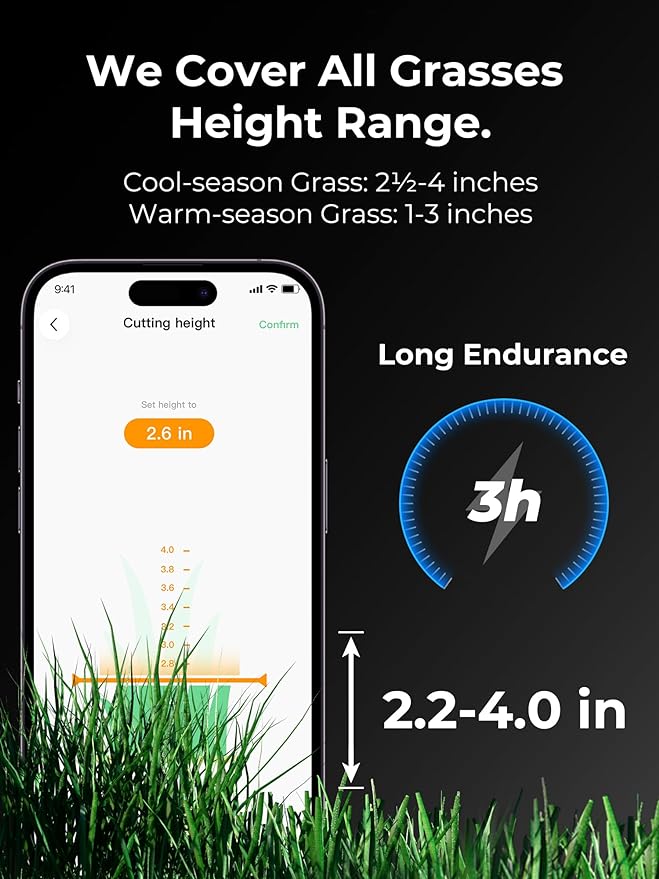 - APP& Voice Control, Mowing is Breeze: Customize different cutting heights, mowing modes and frequencies for multi-zone or check the mowing progress and location from anywhere via your smartphone with the Mammotion app or integrate the automatic mower into your smart home setup with Amazon Alexa or Google Home.