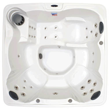 Product TypeStandardMaterialAcrylicMaximum Capacity7Overall ShapeSquareVoltage220 VoltAmperage50 AmpsMinimum Temperature80FMaximum Temperature104FNumber of Jets100Adjustable JetsYesNumber of Pumps3Pump Horsepower6Waterfall IncludedYesOzonator IncludedYesBuilt-In Seating IncludedYesLight IncludedYesCover IncludedYesSteps IncludedNoFilter IncludedYesCup Holder IncludedYesNumber of Cup Holders8Stereo IncludedYesWater Capacity425 gallonsCompatible with Salt WaterNoSlip ResistantYesAntimicrobialYesUV ResistantYesMold / Mildew ResistantYesFreeze ResistantYesCorrosion ResistantYesSupplier Intended and Approved UseResidential UseImportedYesProduct CareSee Owner’s ManualInterior Color (Silver Marble Interior Color)Silver MarbleInsulatedYesLockable CoverYesLED LightYesAssembly