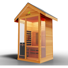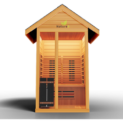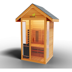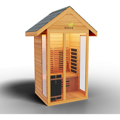 Meet theNature 5 Outdoor Sauna, the first full spectrum and traditional sauna of its kind. What does that mean? Well, it means that it combines full spectrum infrared technology with a traditional heat sauna stove. This amazing sauna is designed to relieve pain, improve cardiovascular health, strengthen your immune sMeet theNature 5 Outdoor Sauna, the first full spectrum and traditional sauna of its kind. What does that mean? Well, it means that it combines full spectrum infrared technology with a traditional heat sauna stove. This amazing sauna is designed to relieve pain, improve cardiovascular health, strengthen your immune system and detox your body. Your spa days at home will never be the same with the Nature 5 Outdoor Sauna. Secure yours today!In a Nutshell:1 Person Capacity8 Ultra Full Spectrum Heaters- 100X StrongerHot/Cold Cleaning Systemto relax muscles and improve flexibilityDetox Routineto remove bad toxins and impurities from the bodyInsulated Airflow Systemto keep your sauna at the right temperature with less effort3D Heat Therapyto improve sore muscles, increase range of motion, decrease muscle spasms, and reduce painSafe Cool Down Systemtoprevent possible health complications from changing temperatures too quicklySkin Rejuvenation/Cleaning Systemtoleave your skin feeling soft, fresh, and newAlso Features:Traditional Sauna StoveNaturalRed CedarSimple Touch Exterior LED Control PanelClasp-together AssemblyRoof VentTempered Glass DoorSpeaker System with AUX/MP3 Connection3 Year Warranty Included forFREESpecifications:Model:Nature 5 Outdoor SaunaInterior Dimensions:48W x 44D x 78HExterior Dimensions:52W x 48D x 97HOperating Voltage:Single Phase 220V-250V/30ampWatts:Spectrum 2300W/Stove 4500 WattsWeight:265 lbsMeet theNature 5 Outdoor Sauna, the first full spectrum and traditional sauna of its kind. What does that mean? Well, it means that it combines full spectrum infrared technology with a traditional h
