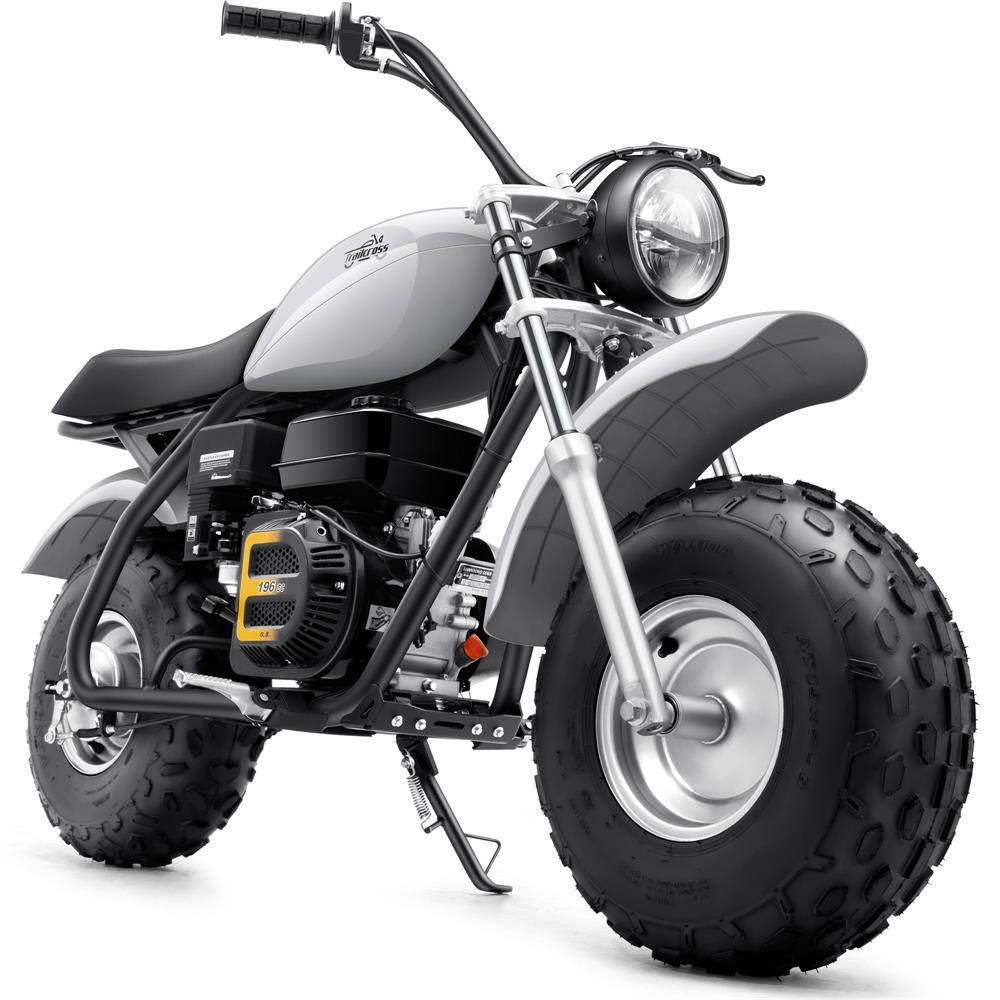 Introducing the MotoTec 200CC 6.5HP Trailcross Mini Bike! Just like the ones your parents used to drive, only safer and easier to use. Powered by a 200cc 6.5HP overhead valve 4-stroke engine(no need to mix gas and oil) and an automatic clutch to ensure easy operation. With it’s rugged steel frame and no-dent fenders, this mini bike is built tough to handle the roughest of terrain.