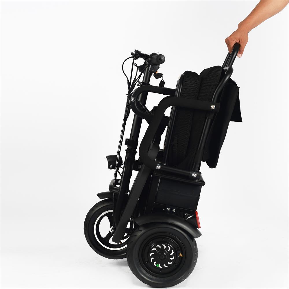 Have no problem with parking and storage. The three-wheeled MotoTec Folding Mobility Electric Trike folds completely into the size of a golf bag, so you can keep it inside for storage. The folded frame has wheels so you can just roll it around. What a great design!