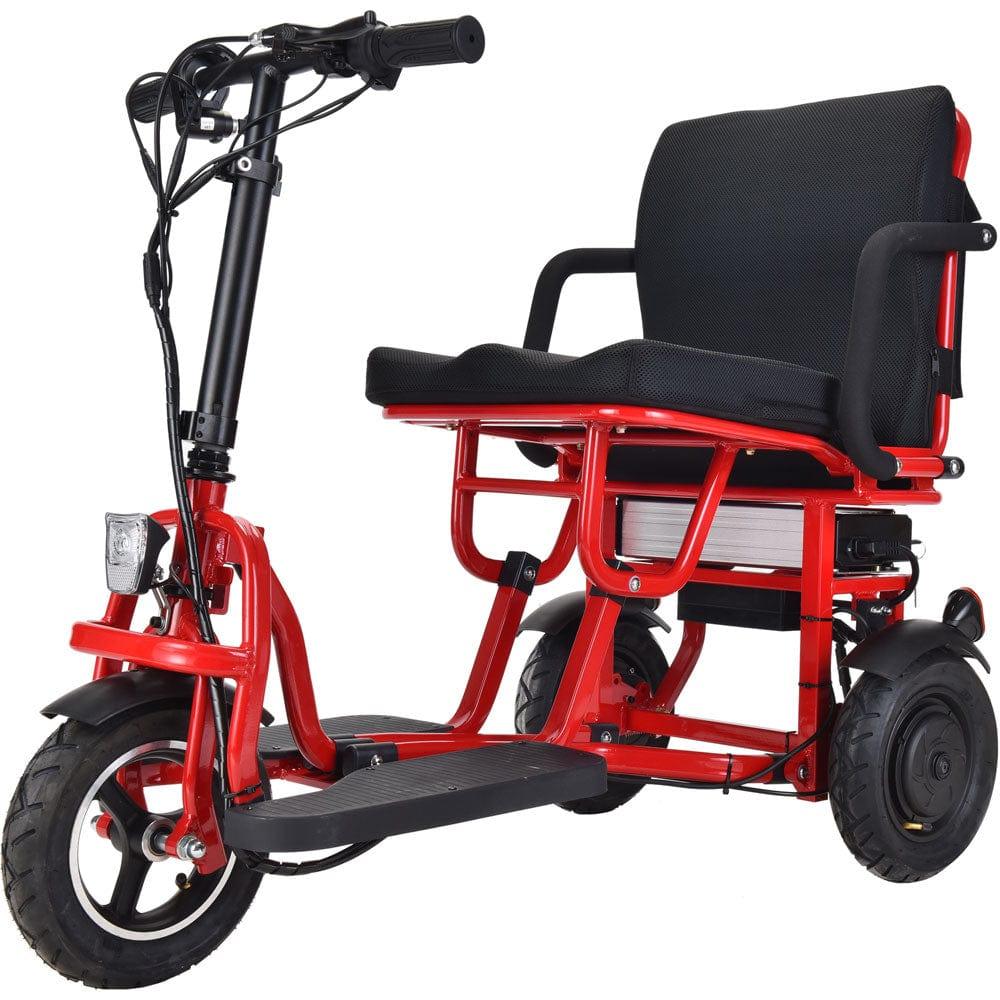 Cruise the streets, visit your favorite spots, cut your commute, and go to work or school with the MotoTec Folding Mobility Electric Trike ! This ultra-compact bike comes with two 350-watt hub motors in the rear wheels, giving this electric trike plenty of power and an exciting character. Compared to many electric bikes, the MotoTec Folding Trike respectable ‘horsepower’ that makes it exciting. This scooter has a simplified metal frame and a padded low-rise seat that make it comfortable and easy to ride even by beginners. If you are looking for a commuter bike that is fun to ride, get the MotoTec Folding Mobility Electric Trike!