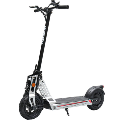 The MotoTec Free Ride Scooter features a gorgeous industrial barebone metal frame with LED strip lights on the deck. It is perfect for leisure and the commute. It features a folding frame that makes storage and parking easy.