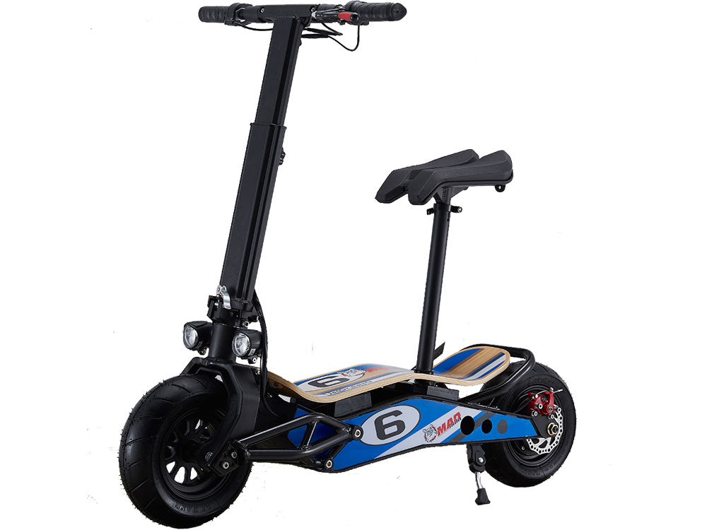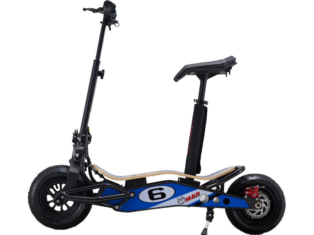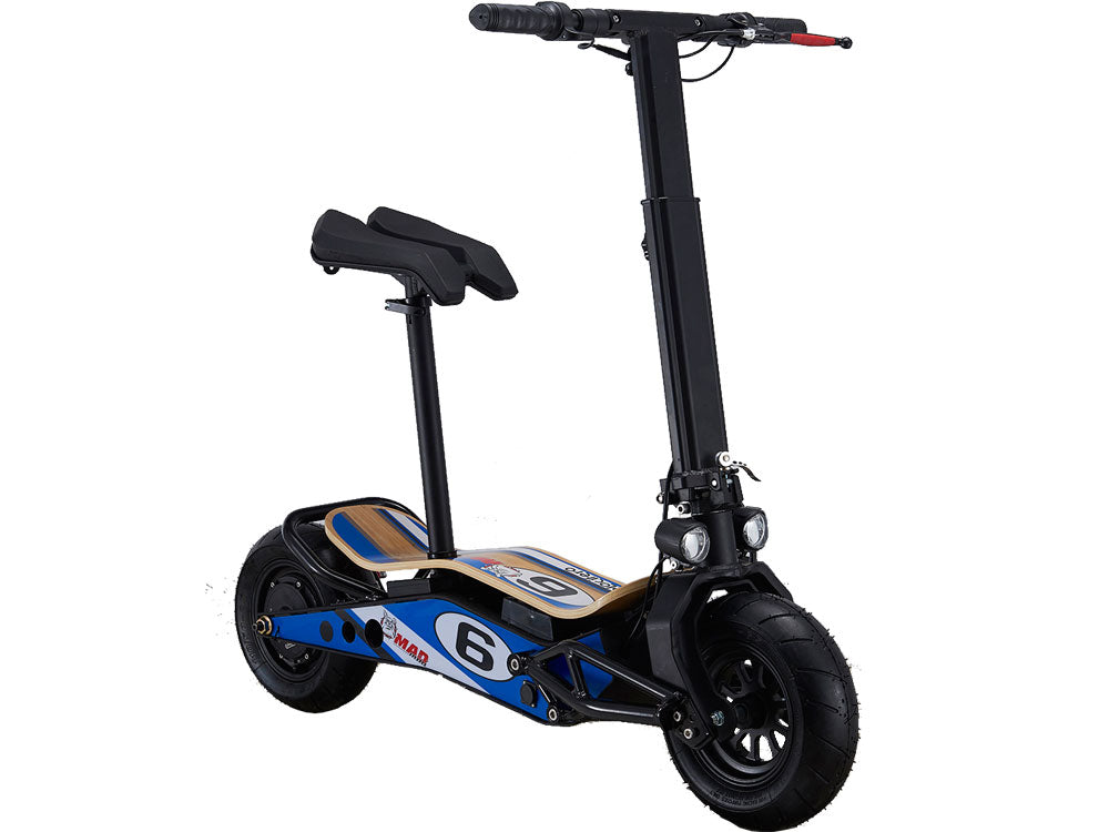 Introducing the new MotoTec MiniMad 36v 800w Lithium Electric Scooter, foldable with a new modern and elegant design. MAD, the new VELOCIFERO, is an example of how a bright idea turns into a successful product. Ergonomic shapes and large wheels will be part of each path.Designed by Alessandro Tartarini, one of the top 100 industrial designer in the world. An exceptional cross between a mini-scooter and an electric bike, with very original styling: the bamboo footrest echoes the latest generation of skateboards, the large tires give it a sports look, the colors and sticker design make it a product with a strong personality.