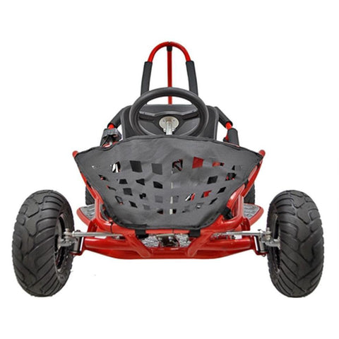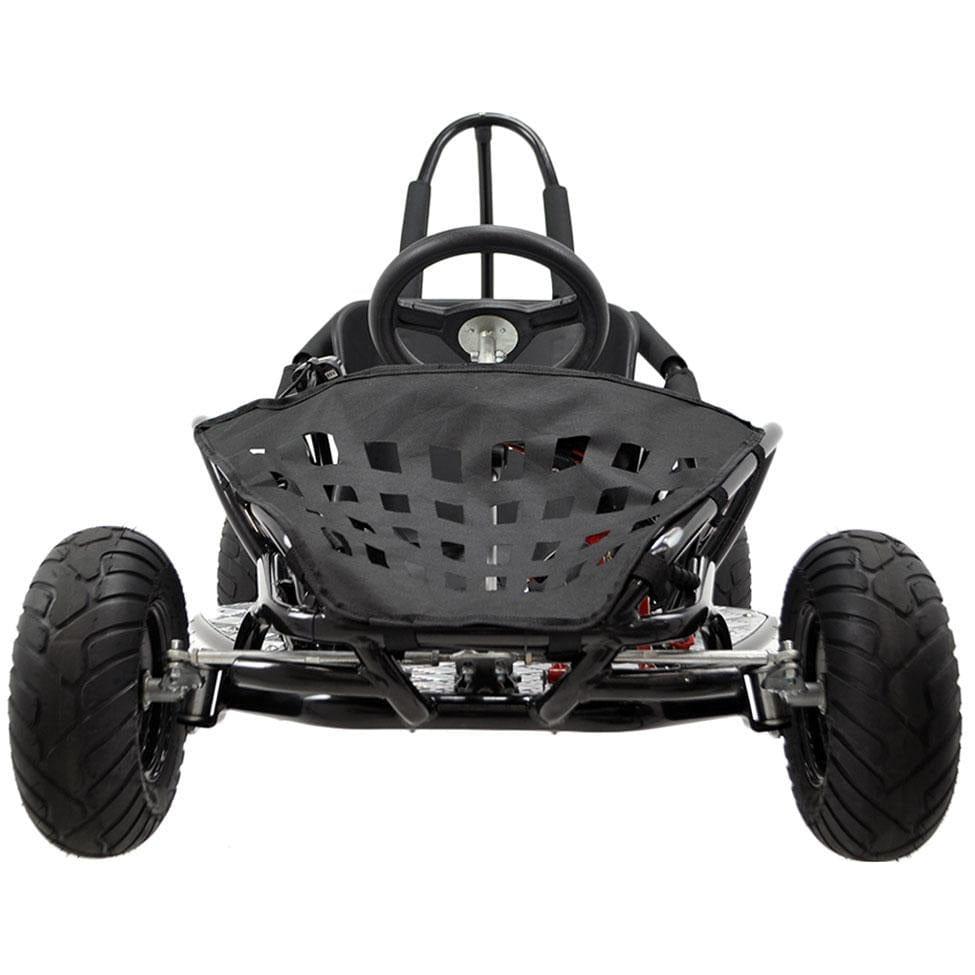 Features a heavy-duty design with a tubular hi-tensile steel frame with a full overhead roll bar cage, padded areas beside the cockpit, and an adjustable bucket seat for the safety of the rider. Even the brake and throttle pedals are made of durable metal, so the MotoTec Off Road is rugged and built to last.