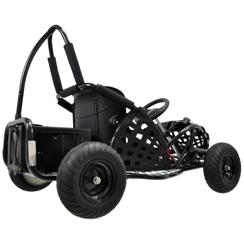 This electric go-kart can be used for fun and kicking dirt. It is equipped with a throttle so you can ride effortlessly. Get around and race in style.
