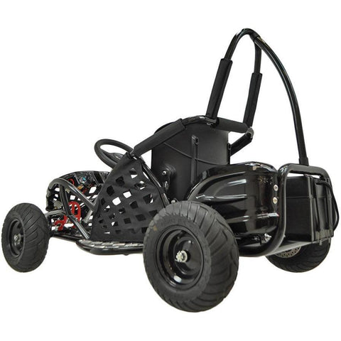 The MotoTec Off Road Electric Go-Kart is perfect for leisure. It features a solid metal frame and a good off-roading capability made to tackle any terrain. The frame can carry up to 120 lbs., so it is a durable and a solid ride. Enjoy riding it on the dirt or in the backyard for fun.
