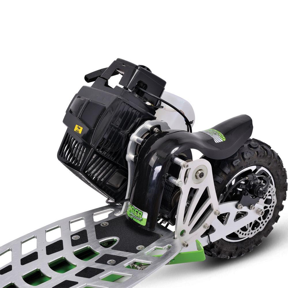 10 years of development have resulted in the most advanced gas scooter launched to date. This MotoTec UberScoot Evo-70x_Green Speed Gas Scooter Xs design has been developed and refined to be as tough as it is functional, making it one of the most versatile PTVs on the market. Whether used for daily commuting or extreme riding, the X will handle any terrain with the greatest of ease.