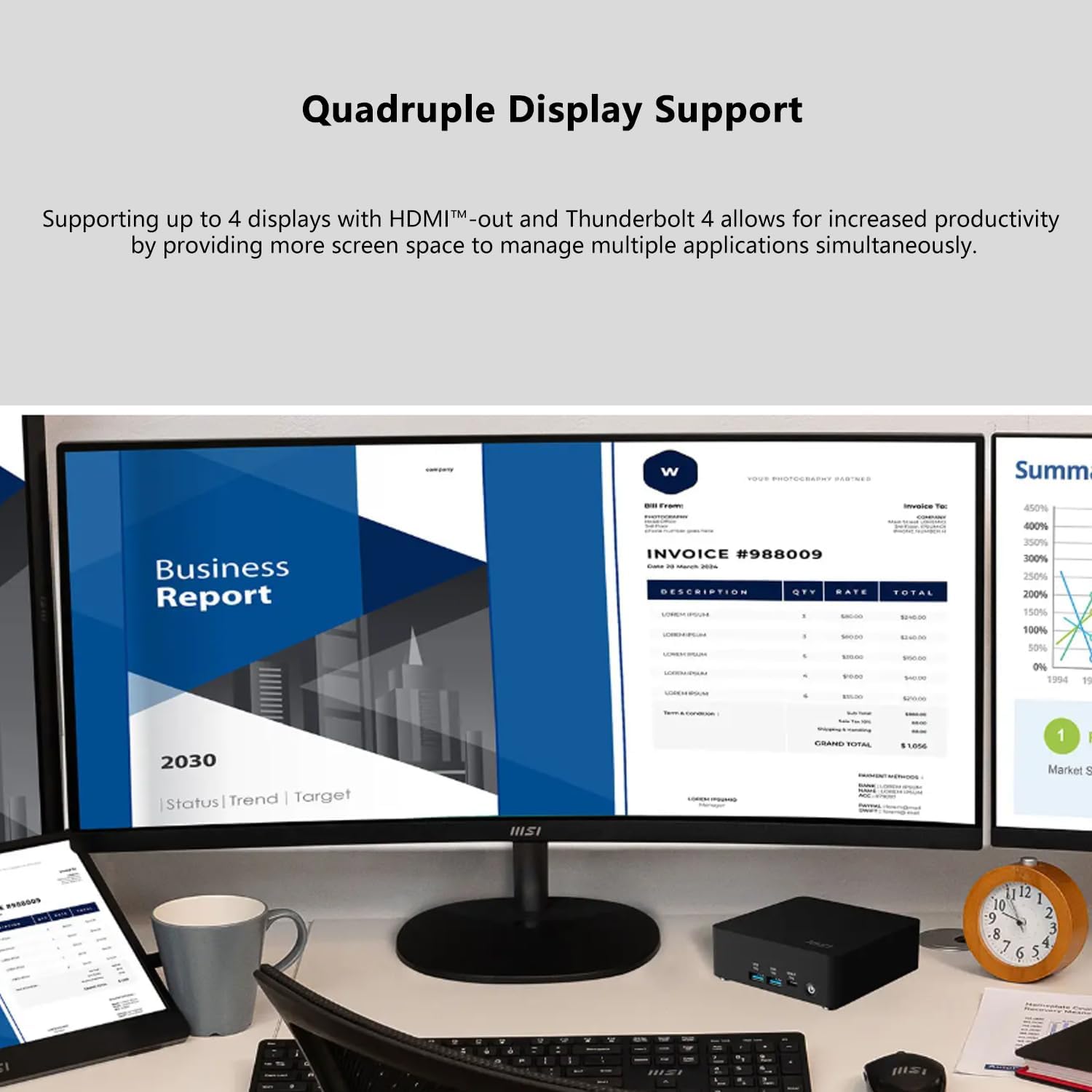• [Quadruple Display Support] Supporting up to 4 displays with HDMI-out and Thunderbolt 4 allows for increased productivity by providing more screen space to manage multiple applications simultaneously.