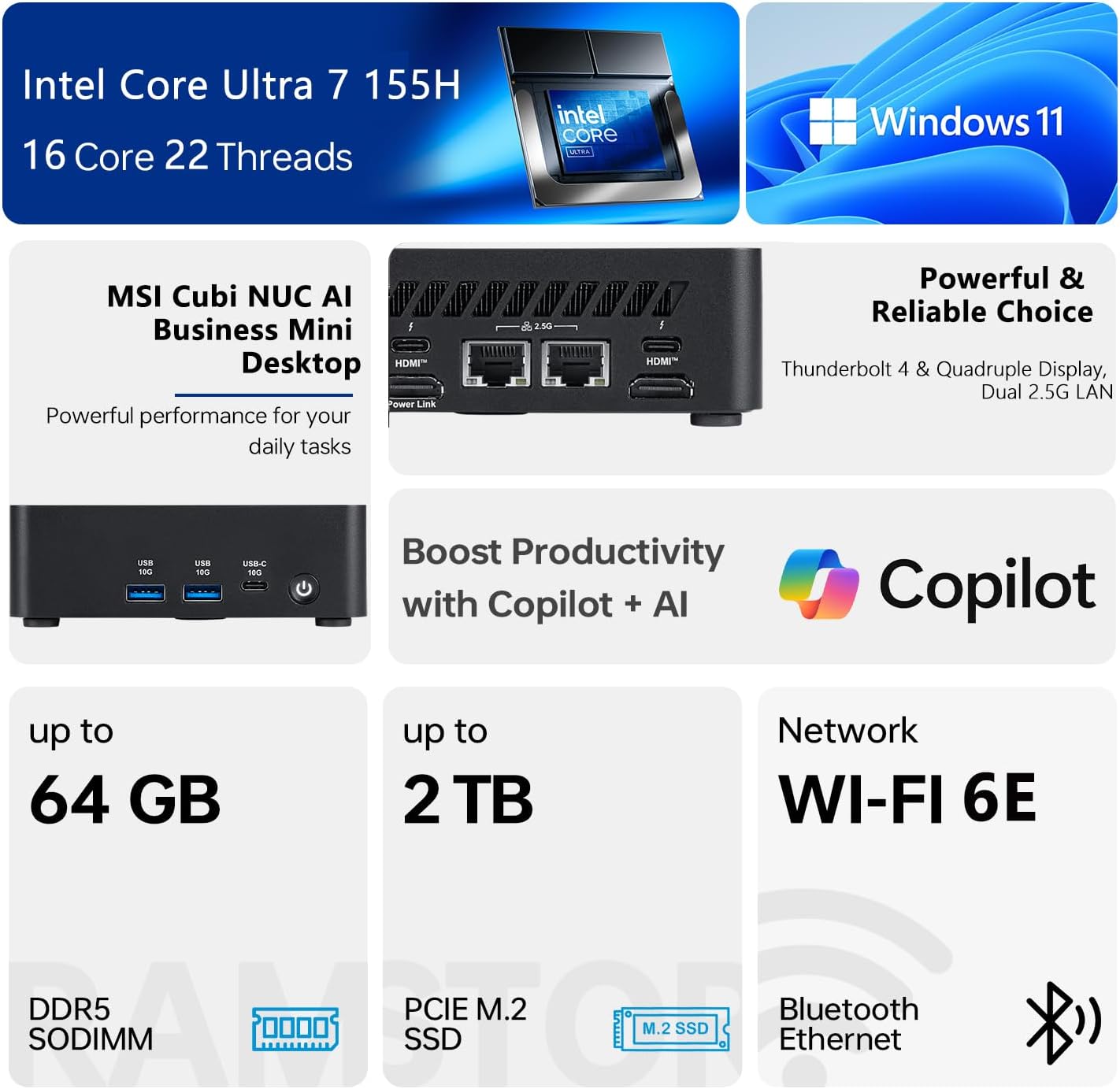 • [Multitask with Confidence] Featuring 32GB DDR5 RAM and 1TB SSD, this system ensures lightning-fast boot times, seamless application switching, and generous storage capacity for critical business data, projects, and AI-enhanced software.