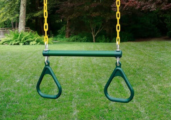 Speed to the finish line with the Outing Wood Swing Set with Vinyl Canopy and Yellow Dual Slides by Gorilla Playsets. This charming playset includes two side-by-side yellow Alpine Wave Slides so kids can compete in friendly races. The Outing Swing Set also features two extreme-duty swing belts, a trapeze bar assembly, a built-in sandbox area, and so much more. The Green Deluxe Vinyl Canopy protects the play deck from the elements and provides a shady spot on sunny days. This swing set includes all required hardware, all lumber, and a step-by-step instruction manual to reduce assembly time. The lumber comes pre-sanded, pre-cut, and pre-stained at the factory. Even the main beams come pre-drilled to cut back on building time. Gorilla Playsets’ cedar lumber naturally resists rot, decay, and insect damage. We recommend using a sealant, like our Playground Sealant, within the first 90 days to keep your swing set looking nice and help prolong the life of the play system. Order your Outing Wood Swing Set with Vinyl Canopy and Dual Slides today and race to the finish line!