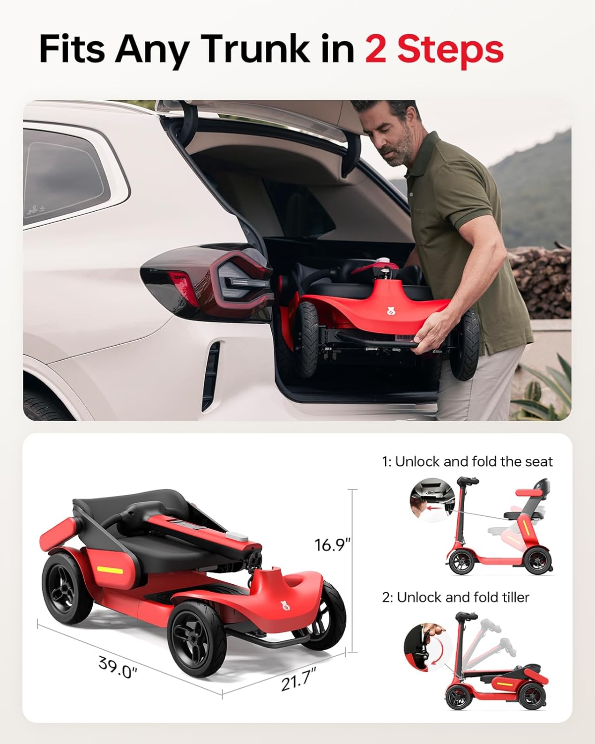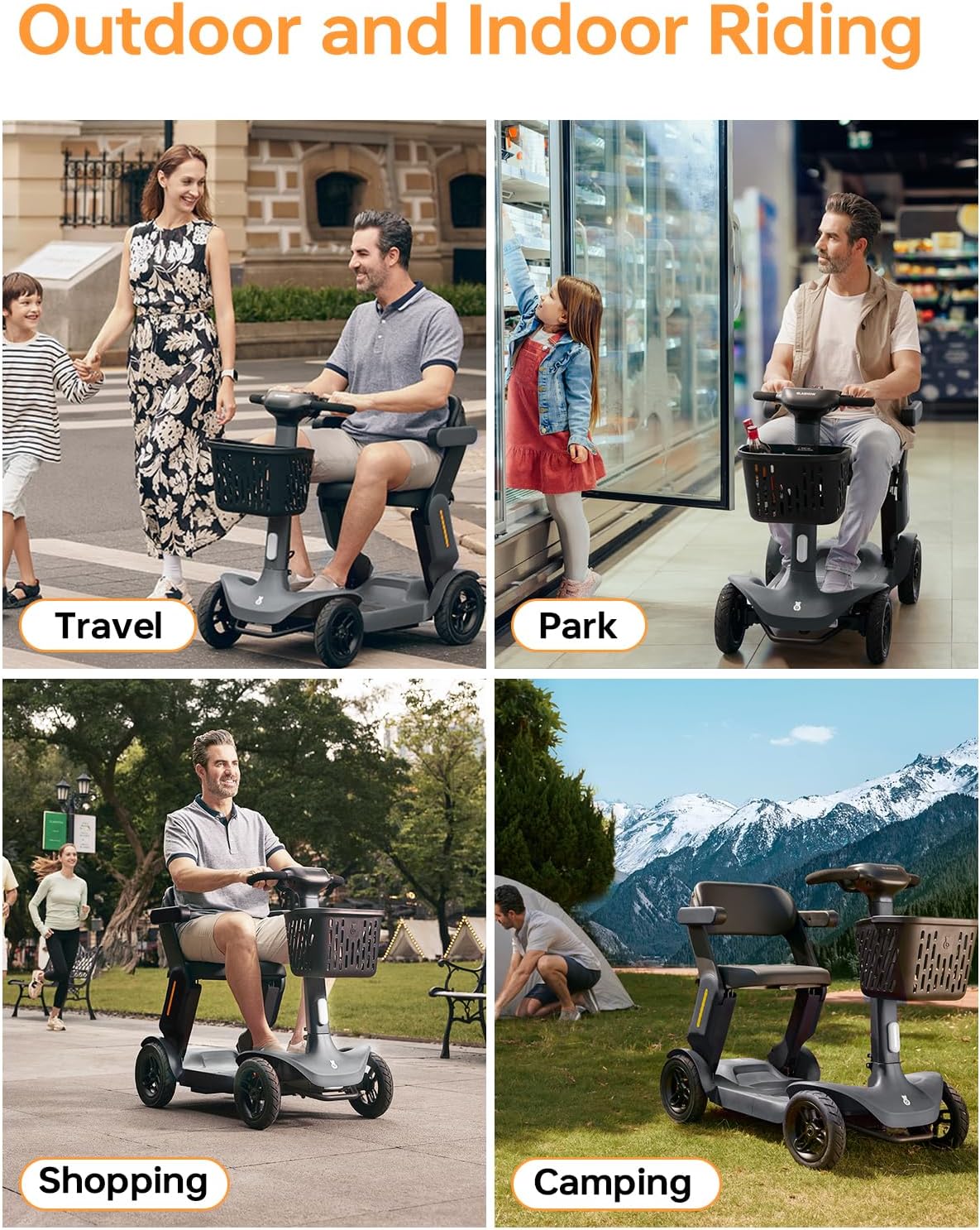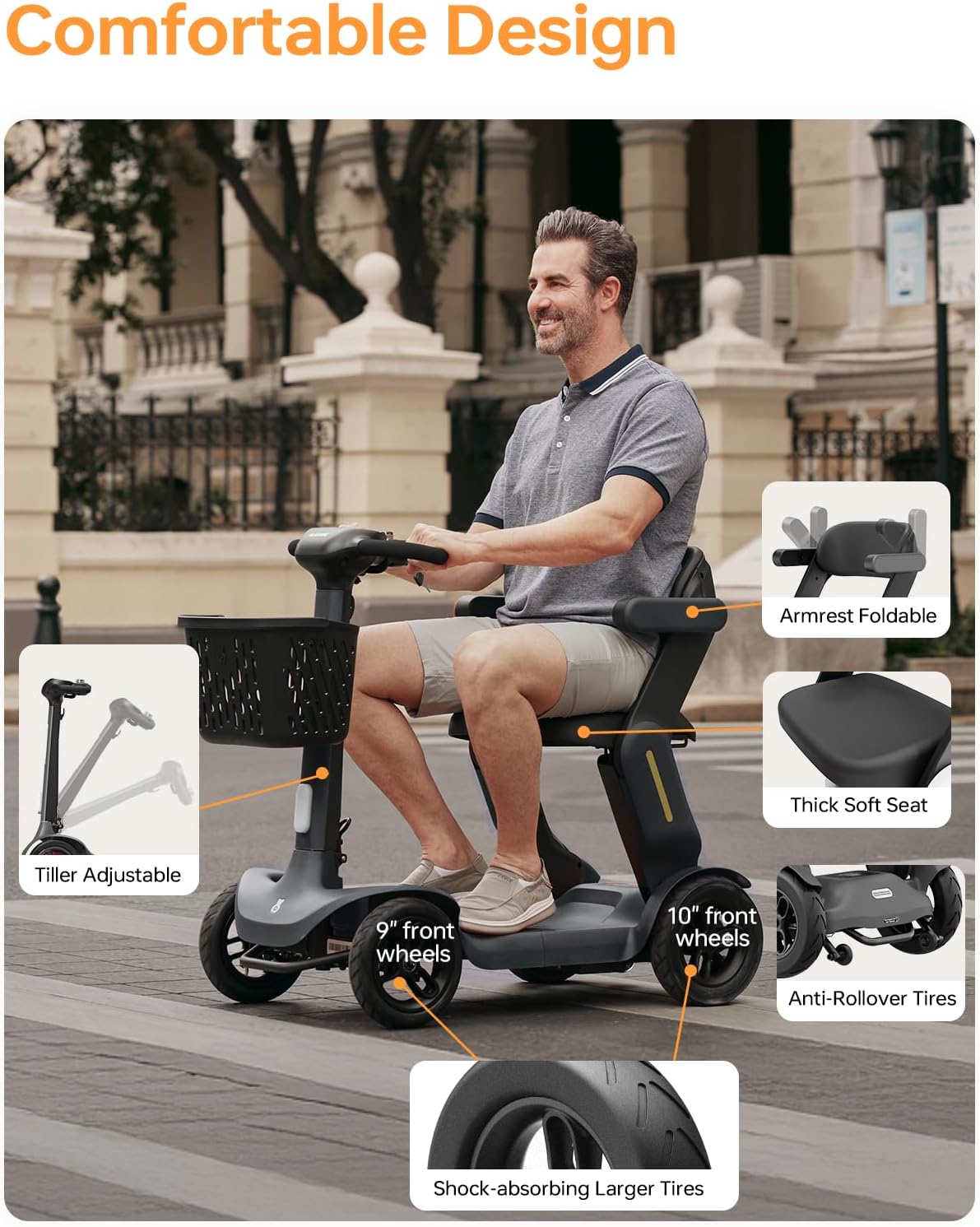 Paiseec S3 Pro Foldable 4-Wheel Mobility Scooter for Seniors, 40 Mile Range, 250W, All-Terrain