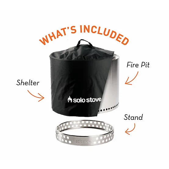 With its durable stainless steel construction, the Solo Stove Bonfire is built to last while providing efficient heat in areas of 4-8 feet. The removable base plate and ash pan ensure easy cleanup, and the included Bonfire Stand protects surfaces while keeping airflow optimized. The Black Bonfire Shelter offers extra protection when the fire pit is not in use.