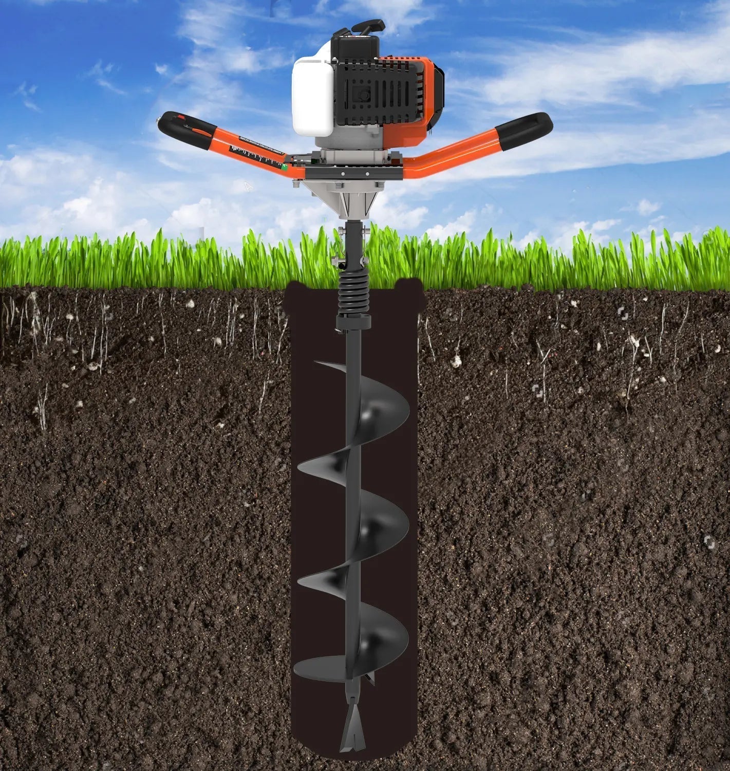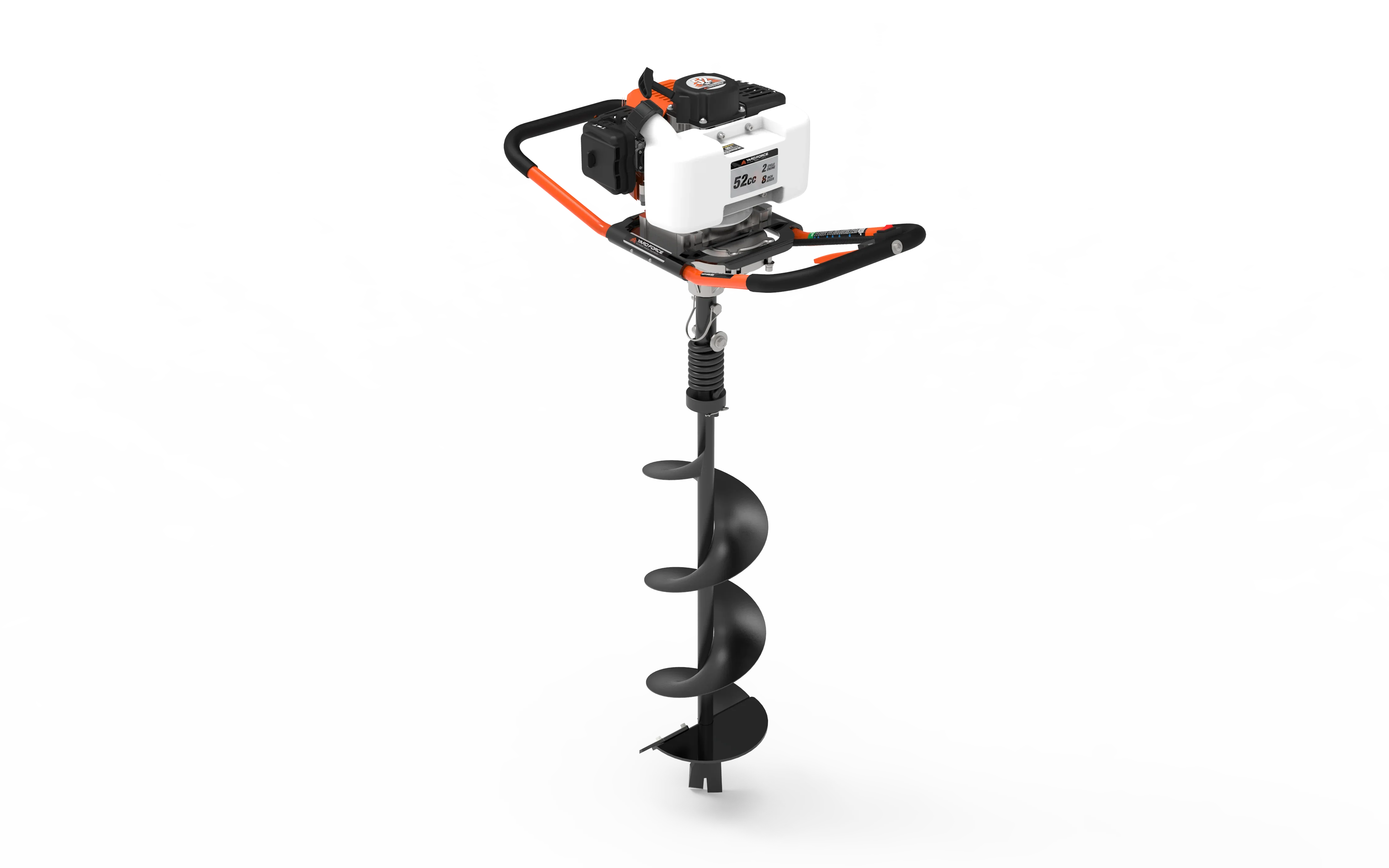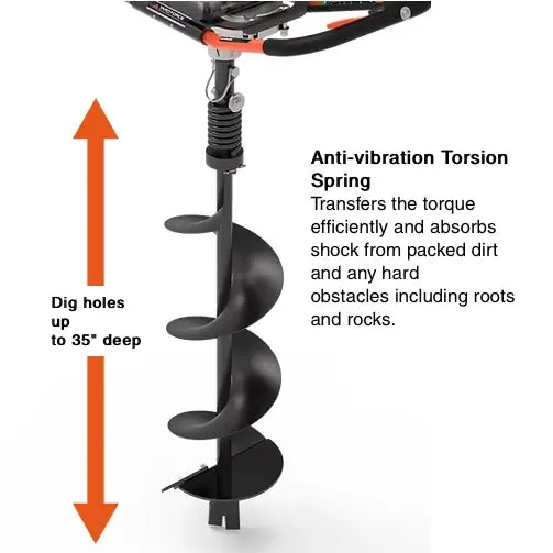 The Yard Force YF52-8 gas-powered earth auger is equipped with a 52cc, 2-cycle engine with 62 ft lb. torque to cut through tough soils like clay and packed dirt with ease. The recoil easy-start fuel system ensures hassle-free starts every time. Equipped with an 8-inch hardened steel auger bit and a pilot drilling tip, it can dig up to 35 inches deep. This auger is perfect for tasks like digging post holes or planting trees. It can be operated by one or two people, offering flexibility for a wide range of projects.