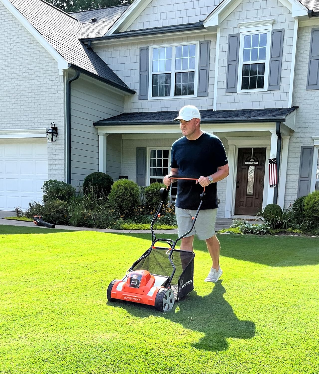 The YF20vRX-RM provides a clean, scissor-like cut from the 5 hardened steel blades that helps your grass heal faster and overall, a better choice for your lawn’s health. The motor drives the rotation of the reel at 1000 RPM to cleanly cut each blade of grass as you walk along. The removable 2.0 Ah battery is easily recharged in the cradle charger. 4 preset heights allow you to adjust the cutting height from 0.5″ to 2″.